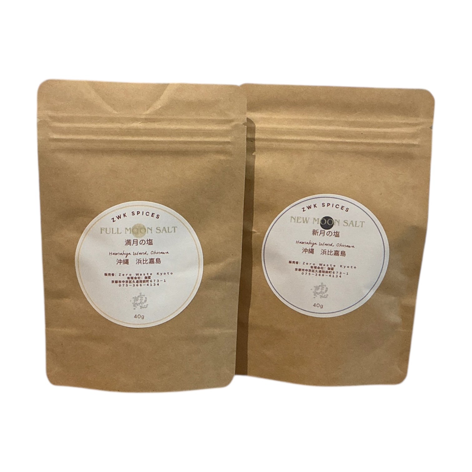 The taste of sea salt changes with the workings of nature. We bring you two types of "Tsuki Shio" (Moon Salt), which are drawn from the mystical island of Hamahiga Island in Okinawa and cooked with the power of nature, with gratitude and prayers for the abundant energy of Mother Ocean.