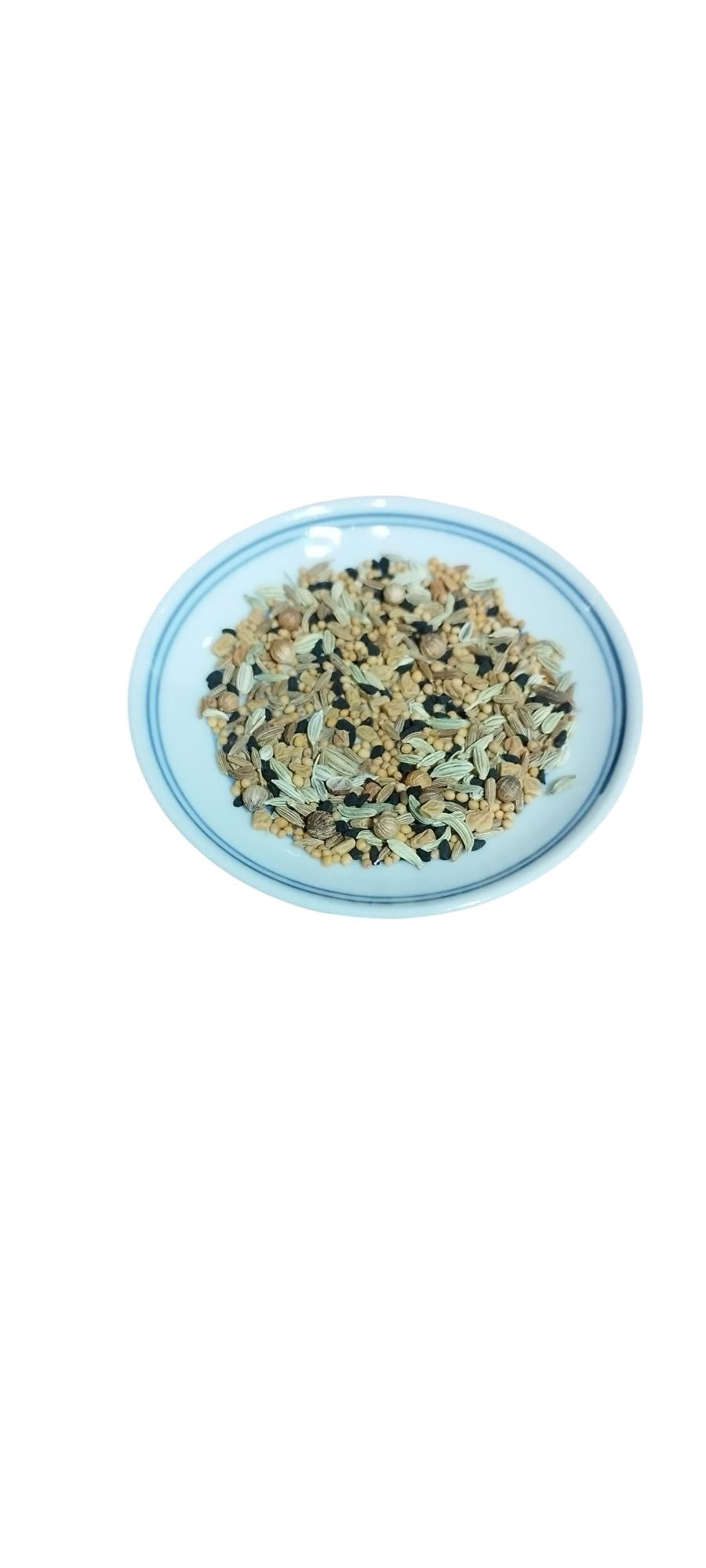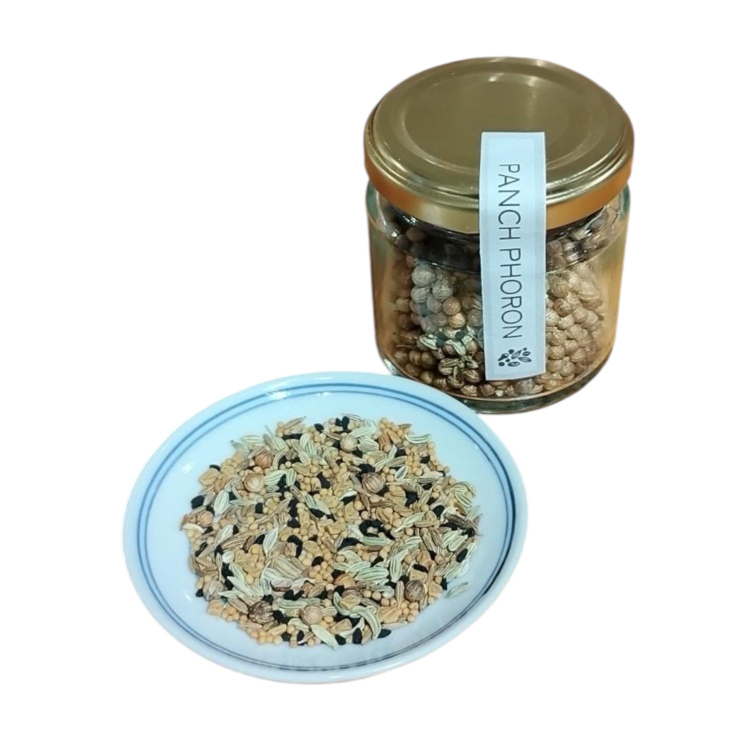 Panch pheron is a very popular spice mix in Indian cuisine, consisting of five spices: cumin, fennel, fenugreek, mustard seeds, and kalonji. It is ideal for vegetable and dal (bean) dishes, and is typically stir-fried in oil to bring out the spice's aroma. It is also commonly used in Ayurvedic cuisine. Rich in protein, vitamins, and minerals, it is recommended when you have a poor appetite.