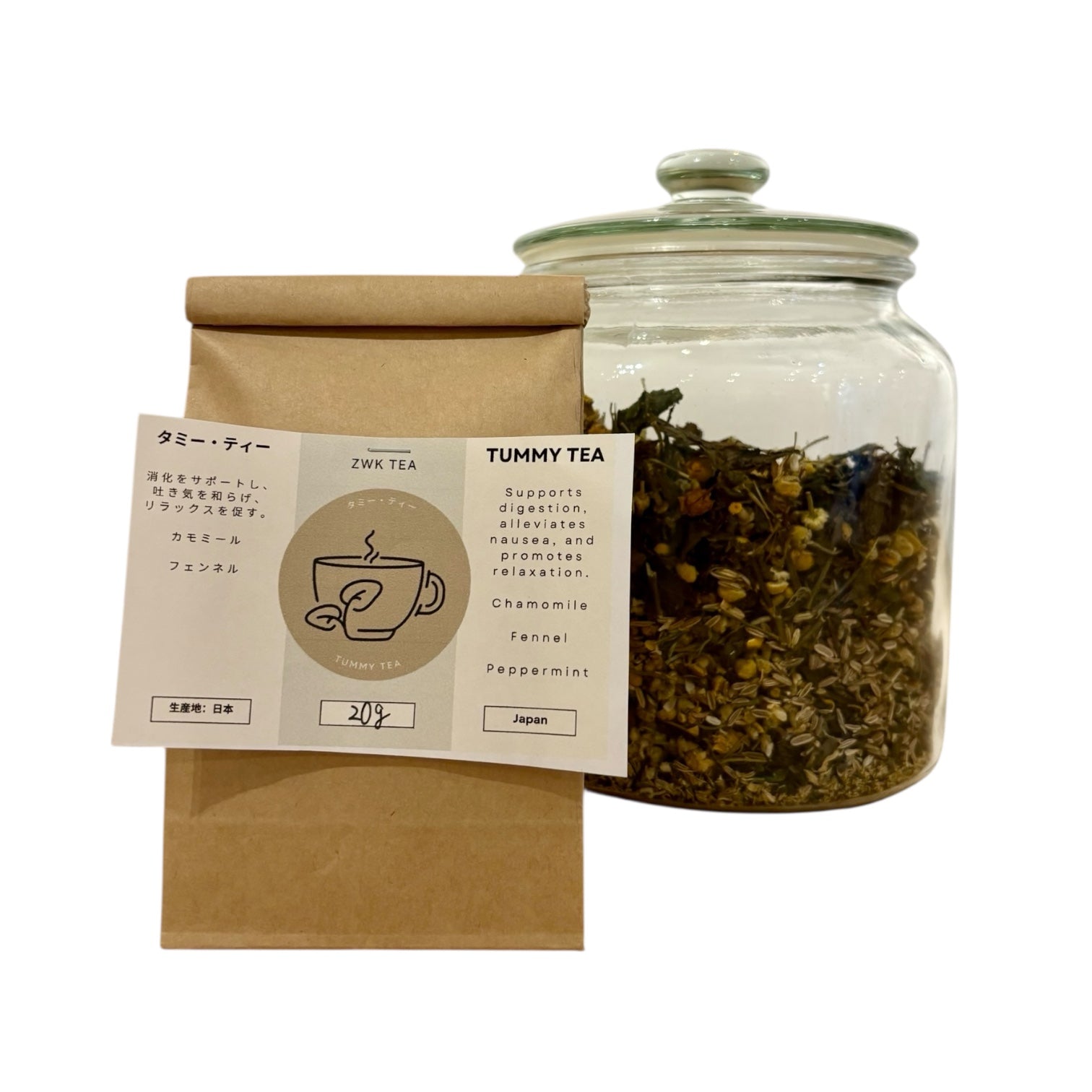 This is a ZWK original blend, created with a combination that resonates with both the mind and body. It is a tea that is gentle on children's stomachs, and of course, it is also a tea blend that gently comforts stress in adults. The tea's ingredients gently spread throughout the stomach, easing stomach troubles.